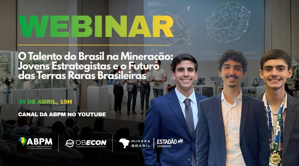 Na quinta-feira (30/4), o Minera Brasil, em parceria com a Associação Brasileira de Empresas de Pesquisa Mineral e Mineração (ABPM) realiza um Webinar sobre o futuro das terras raras brasileiras. Os finalistas da OBECON, ao lado de executivos de referência do setor mineral brasileiro, como Marcelo de Carvalho, da Meteoric Resources, Thiago Amaral, da St George Mining Brasil, Pablo Cesário, presidente do Instituto Brasileiro de Mineração (IBRAM) e Luis Maurício Azevedo, CEO da Bravo Mining e presidente do Conselho da ABPM, irão debater propostas dos estudantes para oxigenar o debate em torno das terras raras