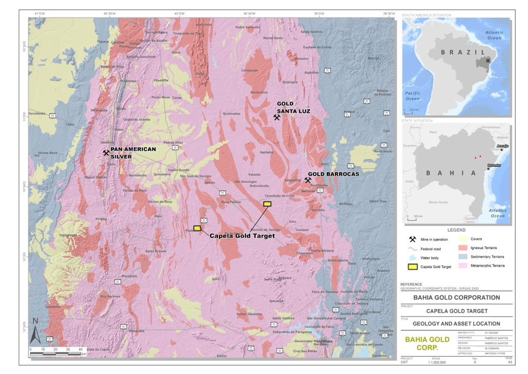 Além do projeto na Bahia, a Brasnova informou que também concentrará seus programas de trabalho do primeiro semestre de 2026 no projeto Jucurutu (IOCG), de sua propriedade integral, localizado no estado do Rio Grande do Norte.