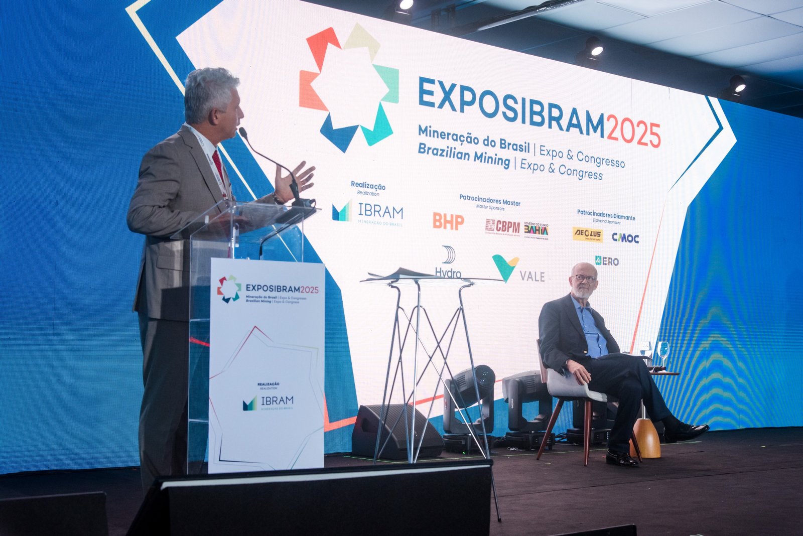 A cerimônia de encerramento da EXPOSIBRAM 2025 contou com a presença do presidente do Instituto Brasileiro de Mineração (IBRAM), Raul Jungmann; do presidente da Companhia Baiana de Pesquisa Mineral (CBPM), Henrique Carballal; e do presidente e CEO do Conselho Internacional de Mineração e Metais (ICMM), Rohitesh Dhawan, entidade que lidera as práticas de sustentabilidade no setor.