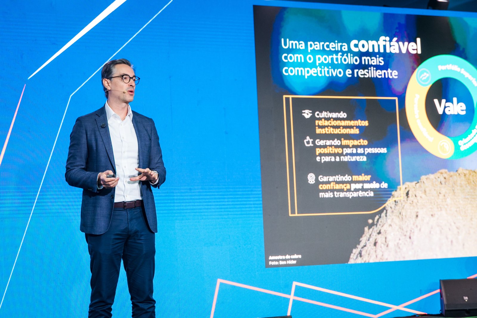 “O foco da Vale está em minerais estratégicos para a descarbonização, como ferro, níquel e cobre, além da ampliação das relações com clientes e o fortalecimento da cultura de inovação. A empresa vive um de seus melhores momentos operacionais, com estabilidade, eficiência e segurança recorde, resultado direto da transformação cultural iniciada nos últimos anos”, declarou o executivo, em palestra realizada nesta terça-feira (28/10).