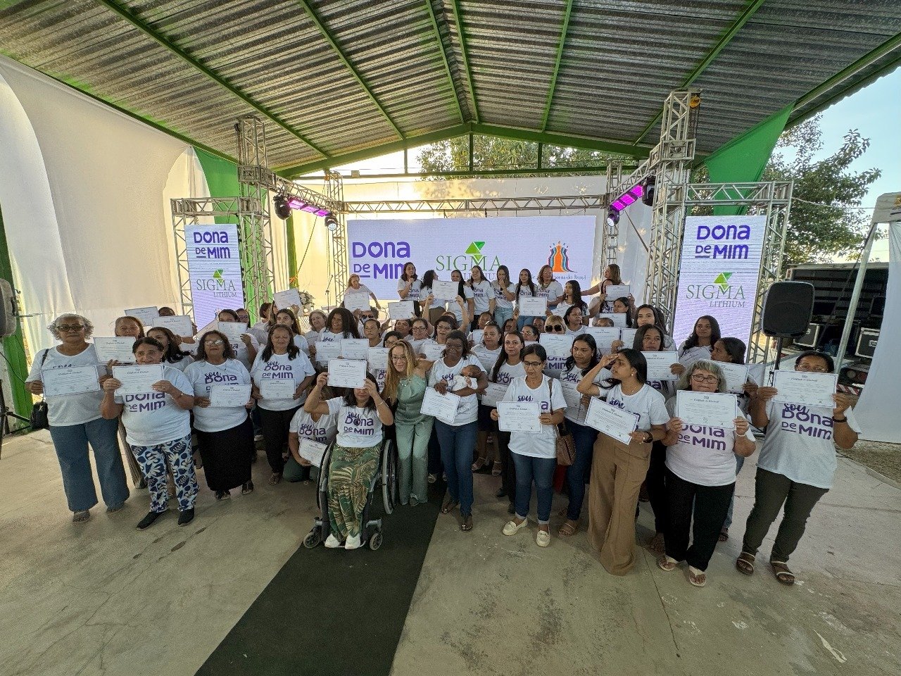 A Sigma Lithium, em parceria com o Grupo Mulheres do Brasil, reuniu mais de 200 mulheres na última quarta-feira (20/08) em um evento que celebrou os resultados transformadores do programa Dona de Mim, que já beneficiou mais de 2 mil empreendedoras nos municípios de Itinga e Araçuaí. O encontro foi realizado no Vale do Jequitinhonha e marcado pela troca de experiências assim como anúncio da nova fase da iniciativa, o Dona de Mim Rural.